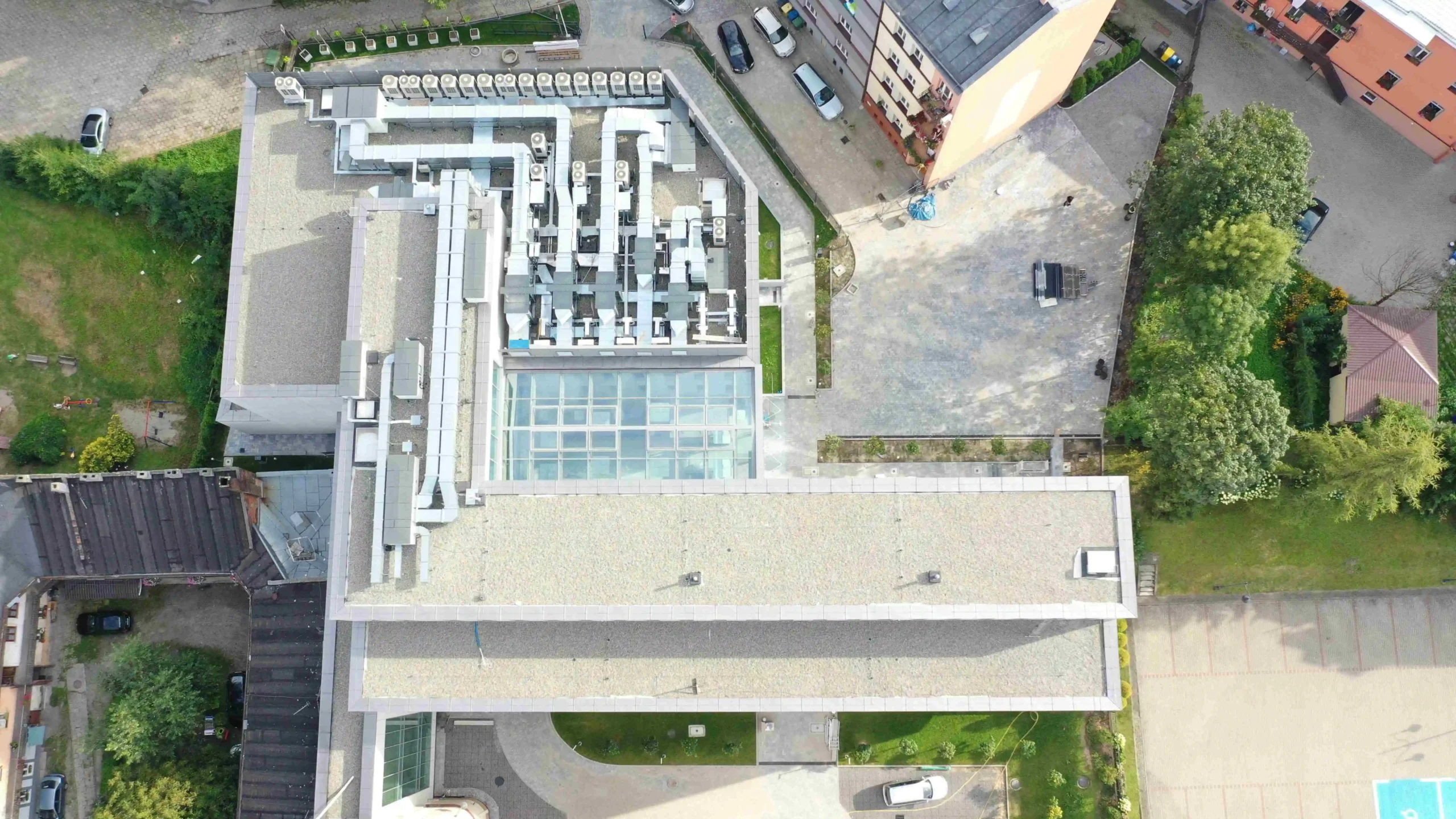 • Zakres prac: Kompleksowe wykonanie pokrycia dachowego w systemie dachu odwróconego. Hydroizolacja z papy, docieplenie stropodachu płytami styroduru XPS oraz rozprowadzeniem kruszywa. Zwieńczenie prac obróbką blacharką na attykach.